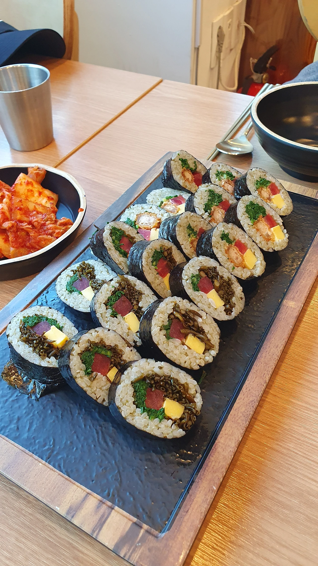 우린 하산을 하며 미륵사에 들렀다. 사진을 찍고 연못에 있는 거북이들을 보며 힐링하는 시간을 가졌다. 또 열심히 바위를 오르는 거북이를 진심으로 응원했다. 그런 우리의 모습이 너무 웃기기도 했고 한편으론 귀여웠다. 퇴사 전에 친해졌다면 더 좋았을 텐데. 그래도 늘 안부를 묻고 주기적으로 만남을 갖는 우리. 하산 후 배말 칼국수와 배말 톳김밥을 먹고 뷰가 끝내주는 카페에서 멍을 때리는 시간을 가졌다. 둘 다 이런 시간을 좋아하고 비슷한 감성이 있어서 그런지 지금보다 더더욱 친해지고 싶은 사람이다.