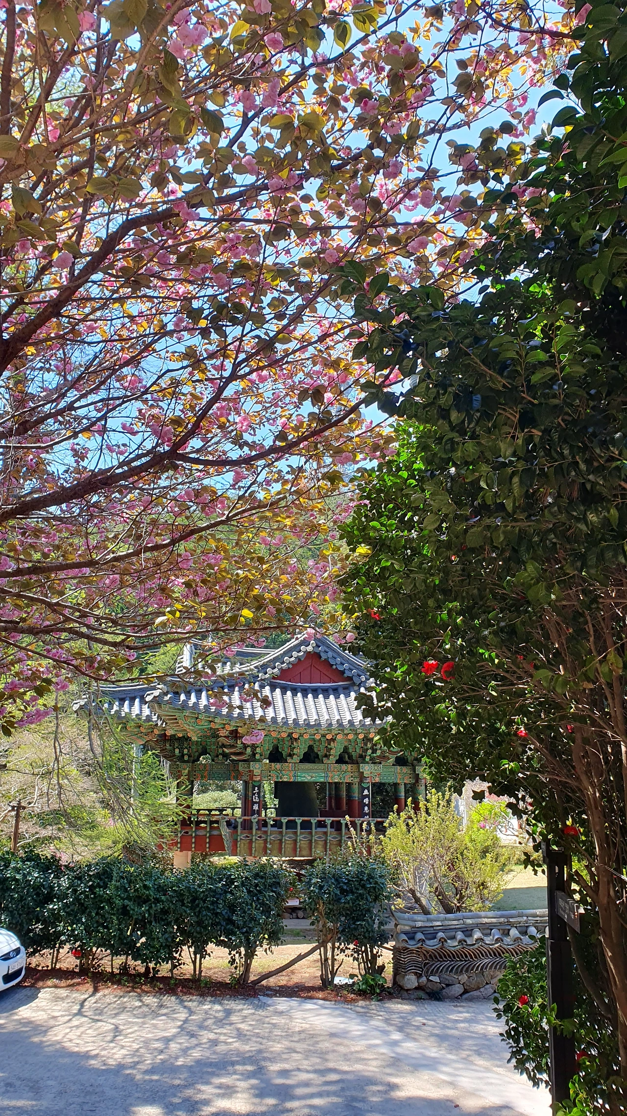 올해 4월 봄, 전직장 동료였던 동생과 통영 미륵산을 다녀왔다. 작년 가을, 동생이 “저도 등산 가보고 싶어요"라는 말을 하는 순간 꼭 데려가야겠다는 마음이 들었는데 반년이 지난봄이 되어서야 드디어 같이 다녀왔다. 우리는 '미륵사’라는 사찰을 지나 입산을 시작했다. 사찰 입구에는 커다란 겹벚꽃이 만개한 채 우리를 반기고 있었다. 초록초록한 나무들 사이에 분홍빛을 띤 벚꽃나무를 보며 한참 동안 사진을 찍어댔다. 이 날은 날씨도 너무 상쾌했고 하늘도 청명하니 맑고 깨끗했다. 남덕유산 이후 2개월 만인 등산이라 그런지 신이 났다. 오솔길을 따라 발걸음을 옮기며 '이것이 바로 피톤치드인가~'하며 즐겁게 그리고 조금은 힘겹게 산을 올랐다.
