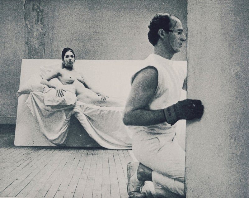 로버트 모리스는 <site_1964>라는 퍼포먼스 작업에서, 캐롤리 슈니먼 이라는 유명한 여성 행위 예술가와 함께 공연을 했다. 로버트 모리스는 얼굴에 가면을 쓰고 공연장 한 쪽에서 다른 쪽으로 커다란 합판을 옮겼고 캐롤리 슈니먼은 흰 천이 깔린 소파 위에 옷을 다 벗고 마네의 <올랭피아_1863> 포즈로 앉아 있었다.