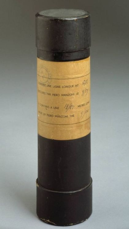 <line_1959>이라는 작품이 있다. 좁고 긴 종이에 선을 주욱 그어 돌돌 말은 뒤에 그것을 불투명한 원통에 넣고 밀봉한 작품이다. 상자 위에는 선의 길이, 날짜, 서명 등이 기재되어 있다. <예술가의 똥_1961>과 같은 내용의 작품으로서 그전 단계에 했던 작품이다.