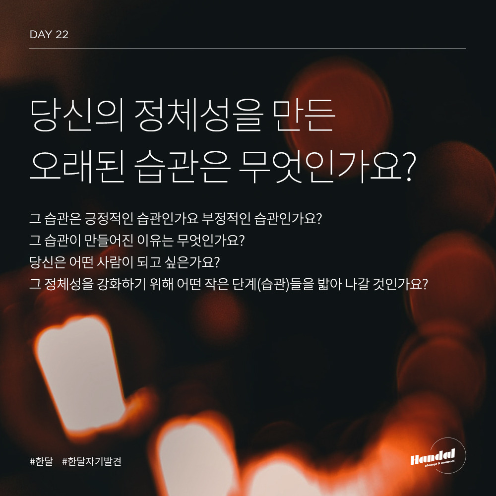 누군가에게 도움이 되는 사람이 되고 싶다는 정체성이 생기다 보니 점점 내가 원했던 습관으로 바뀌기 시작했다. 때로는 이전 나쁜 습관으로 돌아갈 때도 있었지만, 다시 마음을 다잡고 좋은 사람이 되기 위한 습관을 굳히기 위해 노력했다.