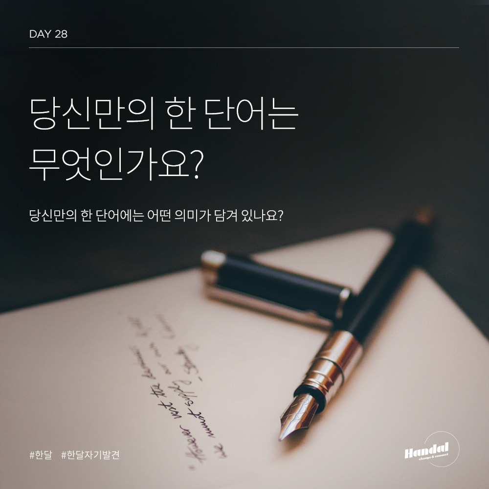 내가 주로 쓰는 몇 가지 키워드가 있다. '성장, 함께함, 실력, 가치관, 사람, 배움, 스승' 이 단어를 주로 사용하는 편이다. 그러나 내 인생을 책임질 단 하나의 단어는 무엇인지 생각하지 못했다.