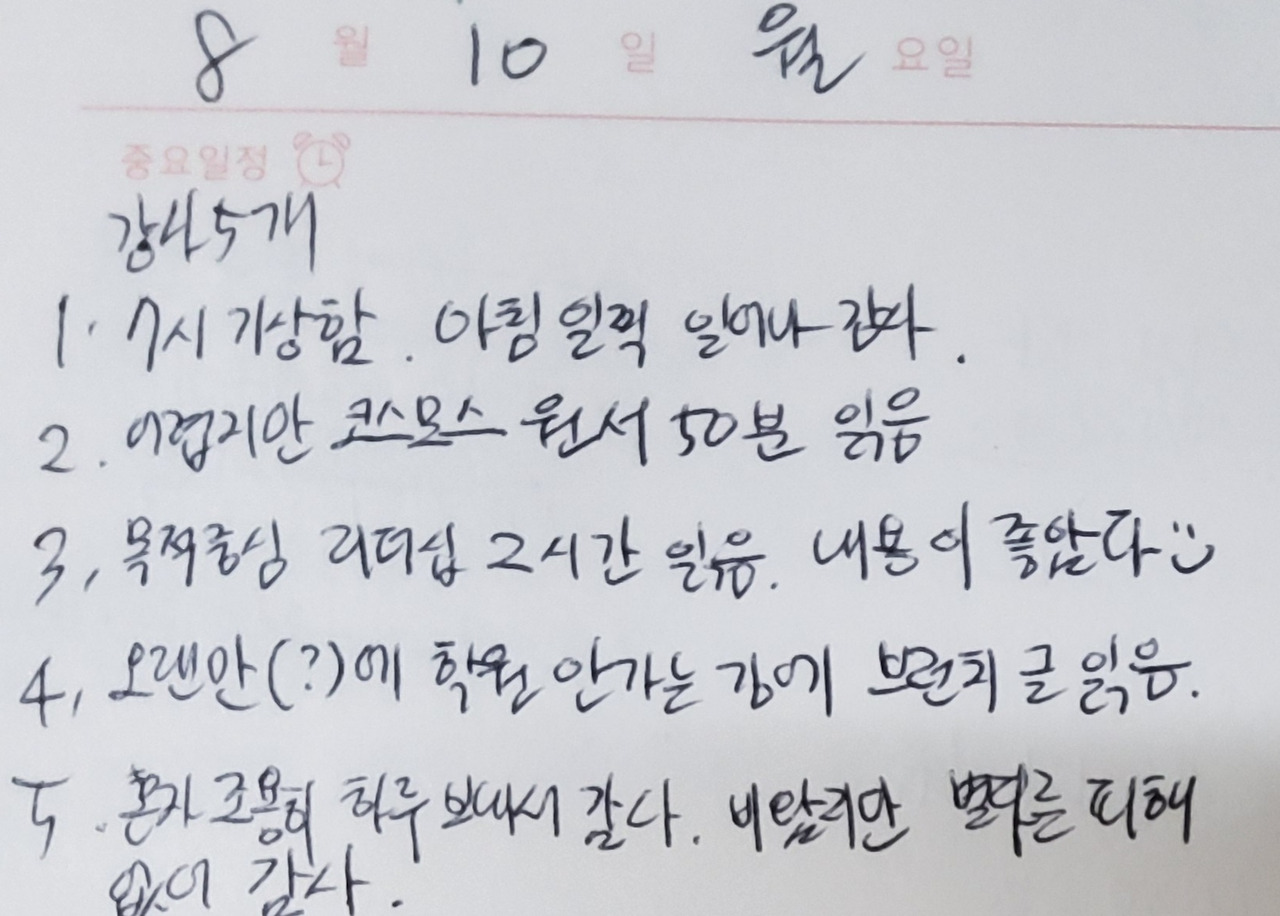 더 재밌는 건 나도 모르게 "아이고 감사하다"라는 말을 하기 시작했다. 아마도 감사 쓰기의 효과인 것 같다. 그리고 조금 더 긍정적인 마음으로 일상을 대하기 시작했다. 스트레스 받을 일이 줄어들고 쓸데없는 곳에 에너지를 낭비하지 않게 되었다.