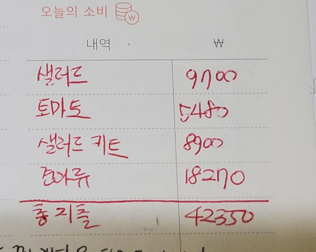 일단 오늘 무엇에 돈을 썼는지 하나하나 기록하자. 따로 가계부를 만들기보다 일정표에 빨간 글자로 기록하는 걸 추천한다. 일정도 확인할 겸 돈 쓴 기록도 확인하면 한눈에 내가 어떻게 소비했는지 알아볼 수 있을 것이다. 이 습관이 확실히 잡힌 다음 주간, 월간, 연간 지출을 정리하면 된다. 솔직히 이 글을 적는 나는 이 부분이 가장 미흡하다. 이 글을 쓰고 나서 주간, 월간 지출부터 정산해야겠다.