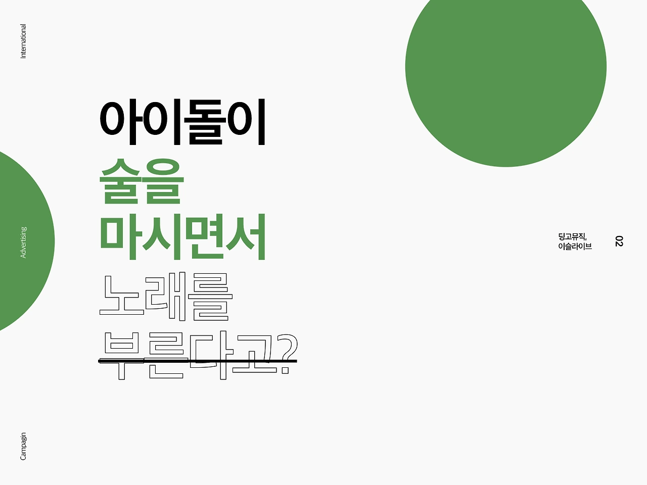 사용할 수 있는 콘텐츠 소스가 마땅히 없던지라 톡톡 튀는 컬러와 함께 타이포 배치를 포인트로 제작했다.