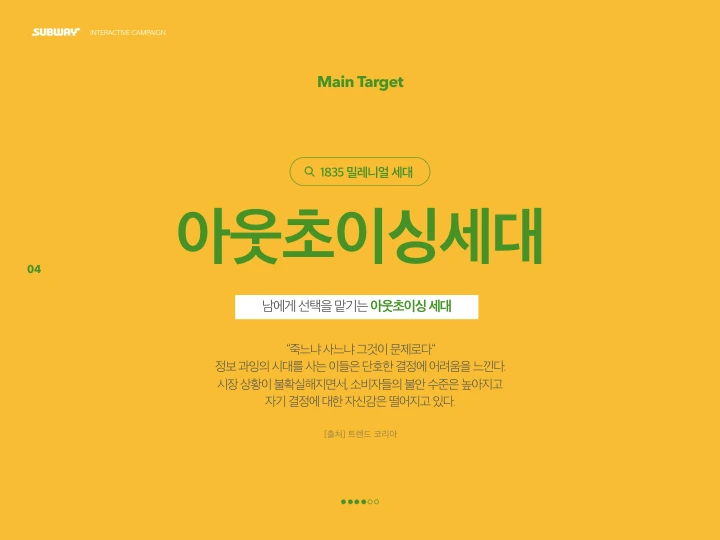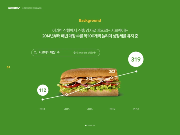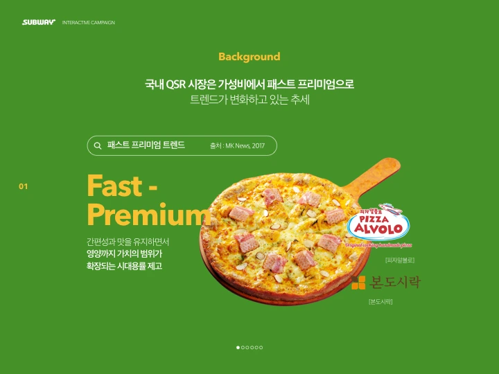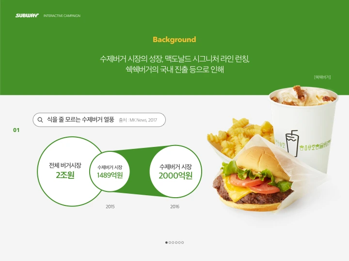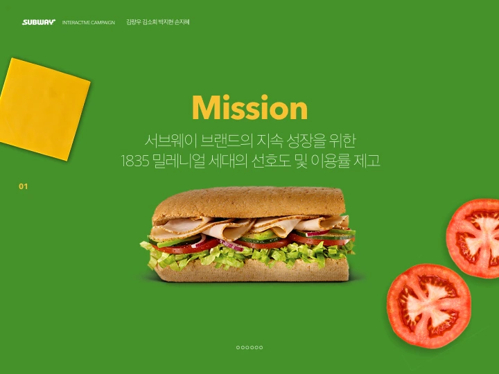 시간이 촉박했던 과제. 위기관리론 발표를 끝낸 다음날이라 새벽에 급하게 제작을 했다. 이 자료의 경우, Official 샌드위치 이미지를 검색하다 발견한 홈페이지에서 메인 이미지와 배치 등을 거의 참고해서 제작했다. 포인트를 잡은 이후에는 서브웨이가 가진 컬러감이나 이미지가 명확해 비교적 디자인하기 수월했다.