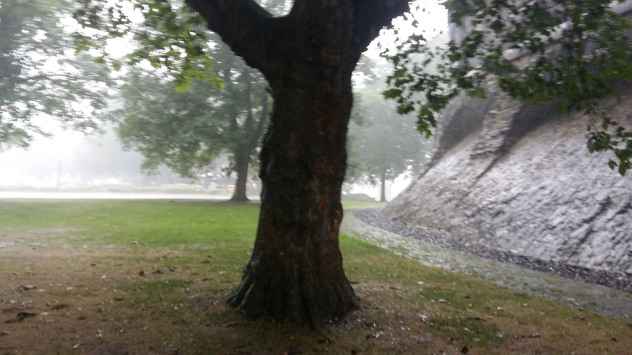 근데 급 바람이 불며 깃발이 휘날리고 비가 후두둑, 몇방울 떨어지더니 급기야 미친듯한 소나기가...약 20분가량 퍼붓는다.