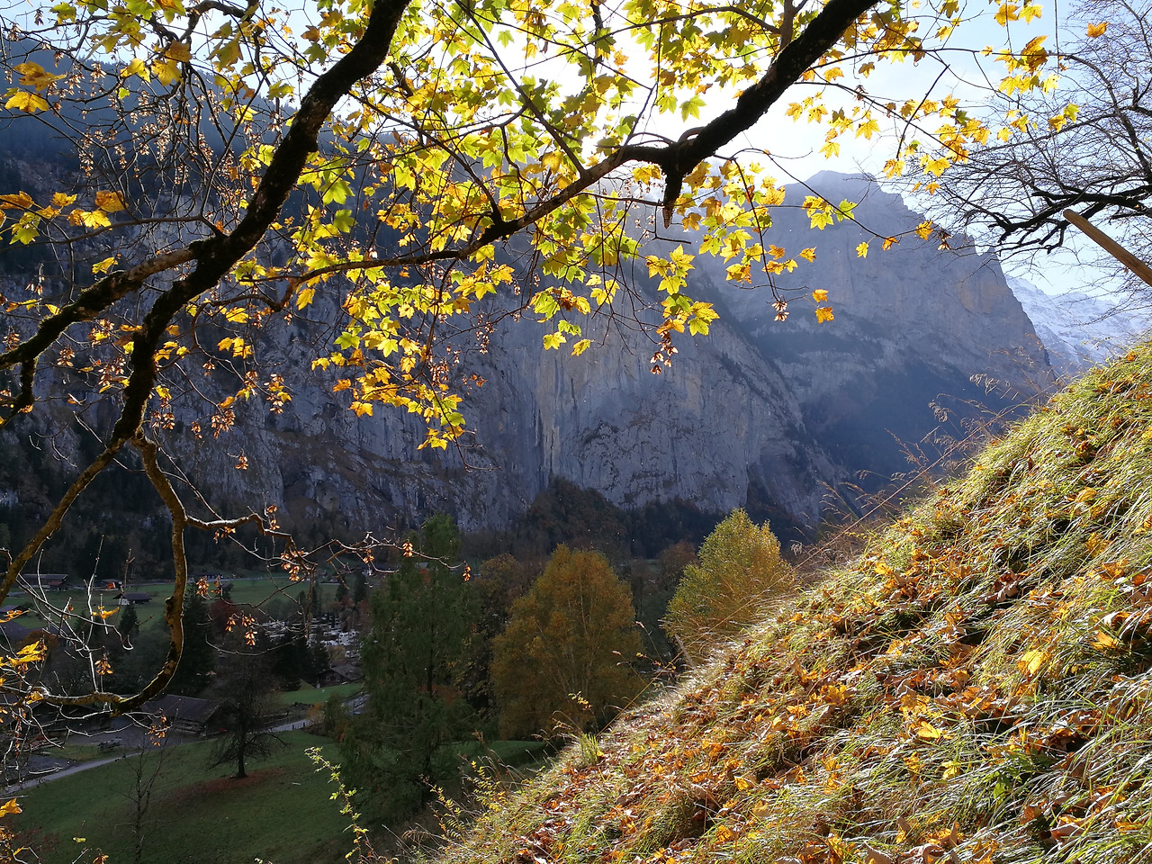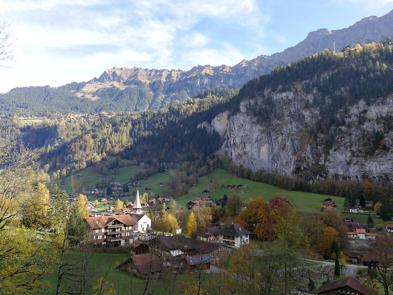 라우터브루넨의 폭포 뒤로 올라갈 수 있는 계단이 있어 쭉 올라가 보았는데, 올라가며 보이는 전경이 또한 예술이다.