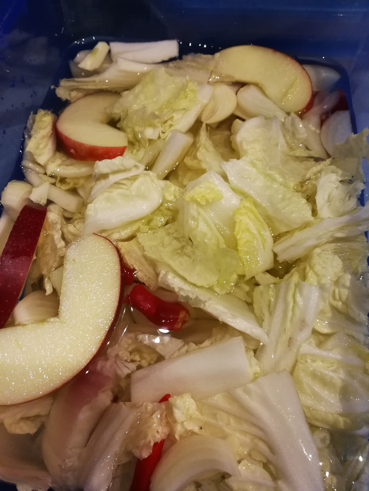 김치 2포기 절여놨는데 김치양념이 한포기 담글만큼만 남아 한포기는 급 동치미로 전환.