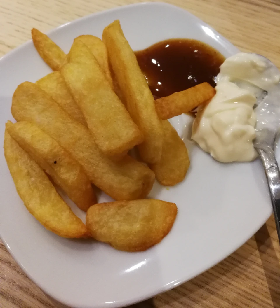 밤에 출출하다니 신랑이 내온 감자튀김.