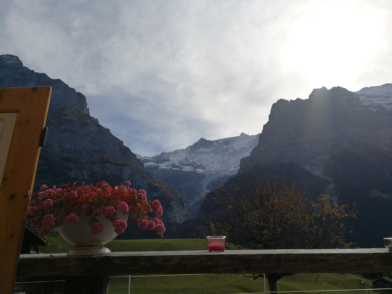 가을 단풍으로 알록달록하던 라우터브루넨과는 달리, 이 곳 그린델발트는 가을임에도 하얀 돌과 푸르른 자연이 가득한 곳이었다.