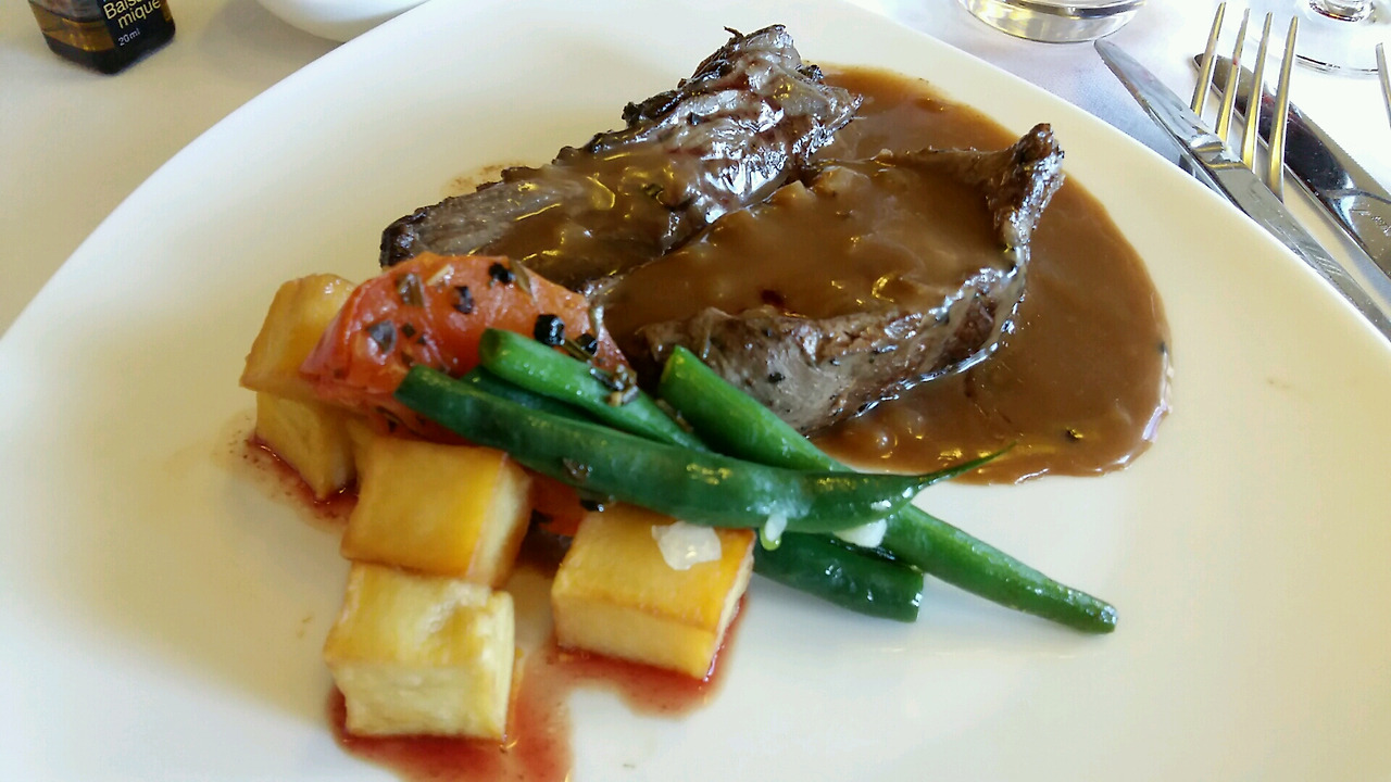 이후 스프와, 스테이크가 차례로 나왔고, 요 스테이크 정말 꿀맛이라 레드 와인과 함께 너무 잘 먹었다. 비즈니스에 제공되는 와인 리스트 확인하고 2가지 정도는 마셔보실 것을 권한다. 원래 단 것만 찾는 내 애기 입맛에 살짝 드라이한데도 너무 잘 맞는 와인이었기에..이름은 생각이 나지 않으나 ㅠㅠ