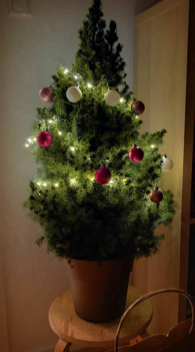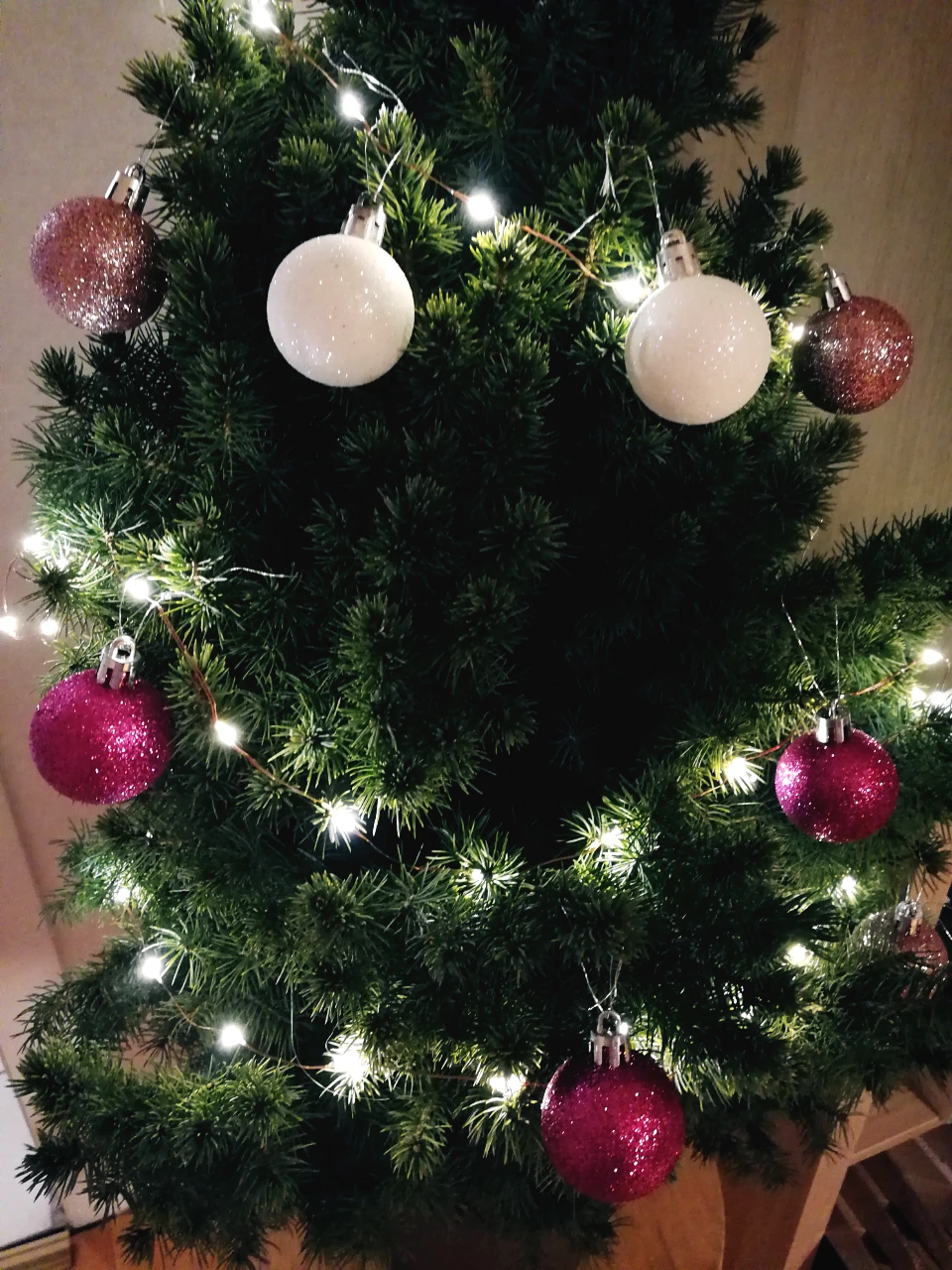 그렇게 사온 나무에 장식을 해볼까했으나 락다운으로 인테리어샵은 다 닫아서 퇴근길에 데엠가서 급히 구매한 전구와 오너먼트. 화려하게 꾸미진 못했지만 이게 뭐라고 전구 좀 둘러주고 이거저거 좀 달아주고 불을 키니까 거실에 있는 내내 계속 보며 좋아하고 있는 나를 발견했다.