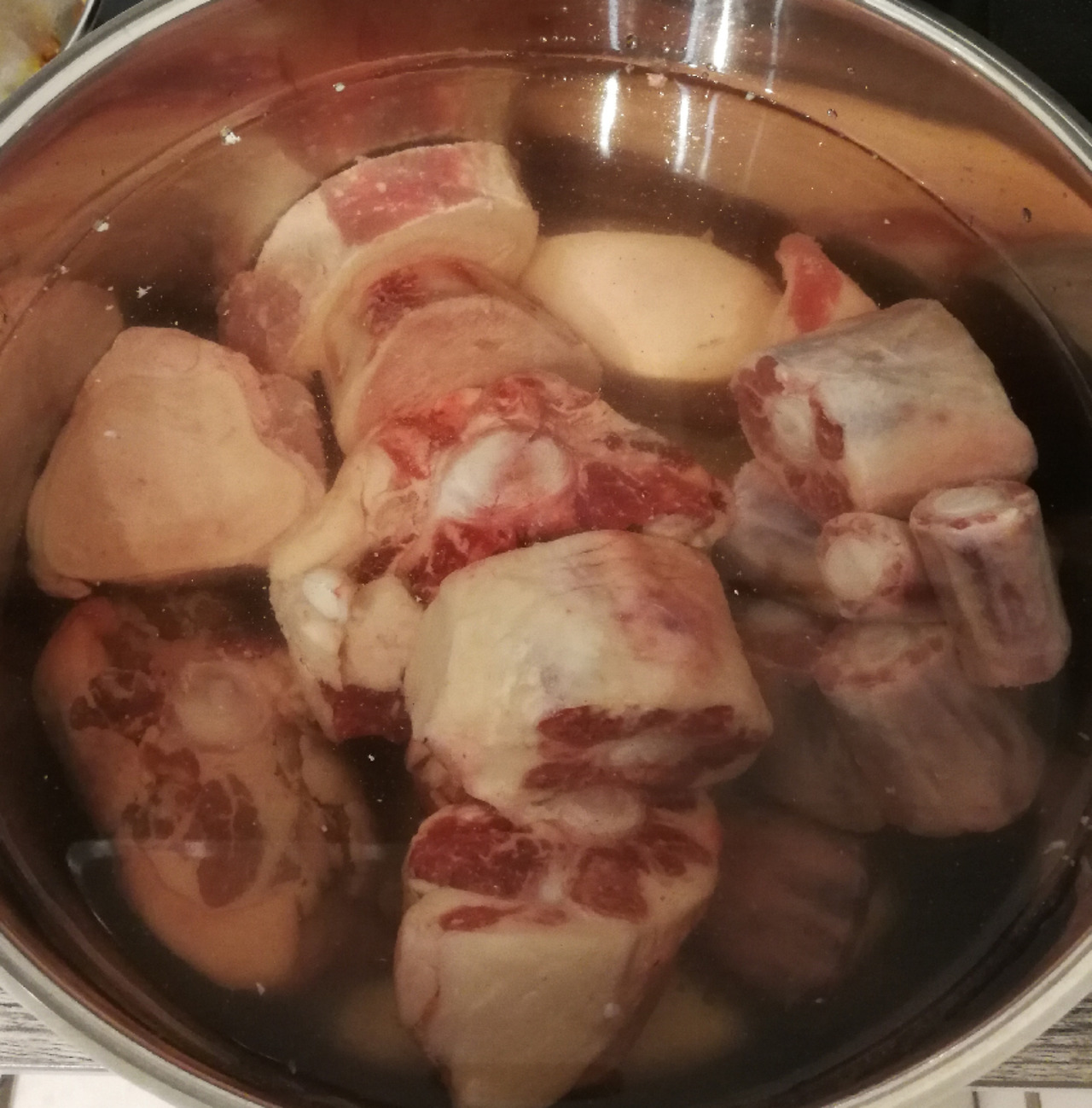 얼마전 사다 둔 유기농 소꼬리와 뼈. 냉동실에 잠자고 있었는데 이제 몸보신 좀 하려고 밑작업 오늘 시작.