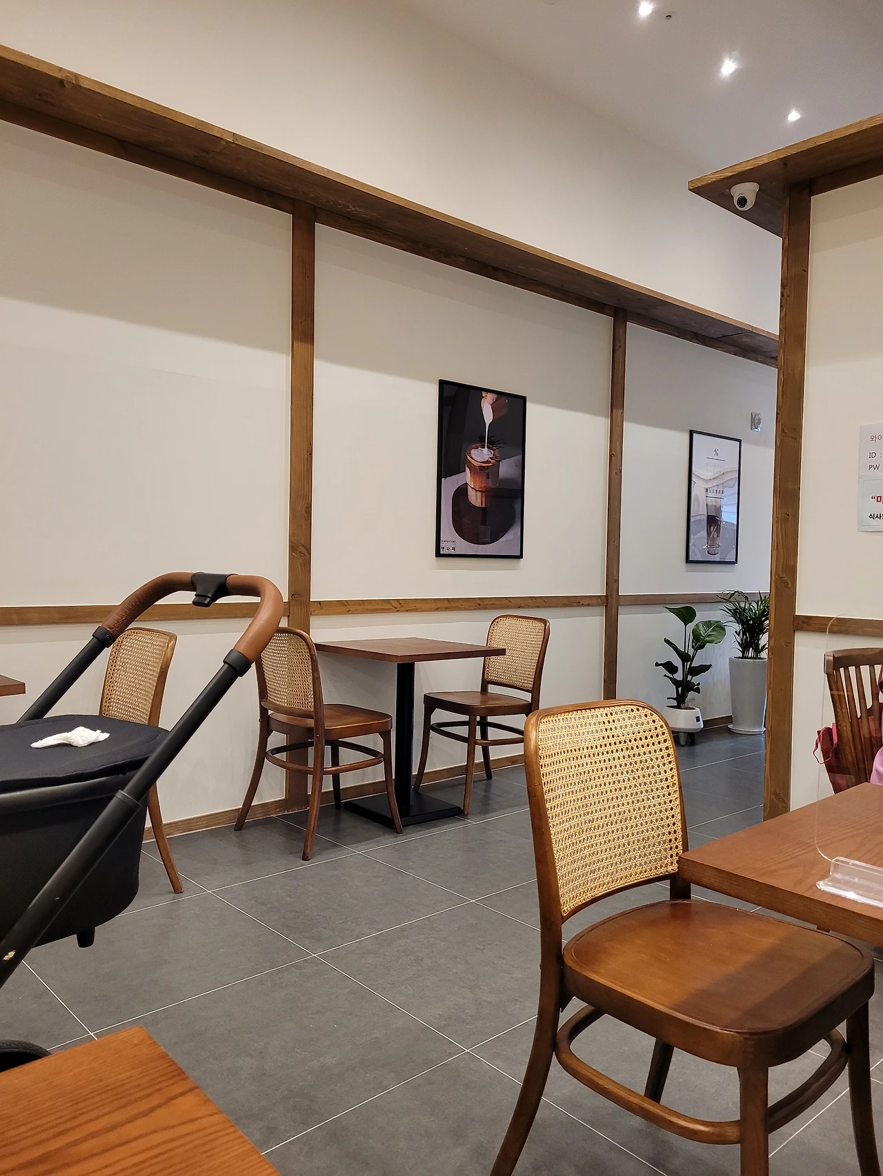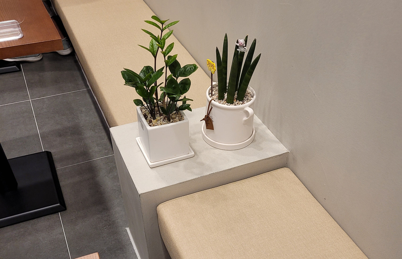 연지 1달정도 되었다는 까페의 나무색 인테리어와 이파리 화분들이 너무 예뻤다.