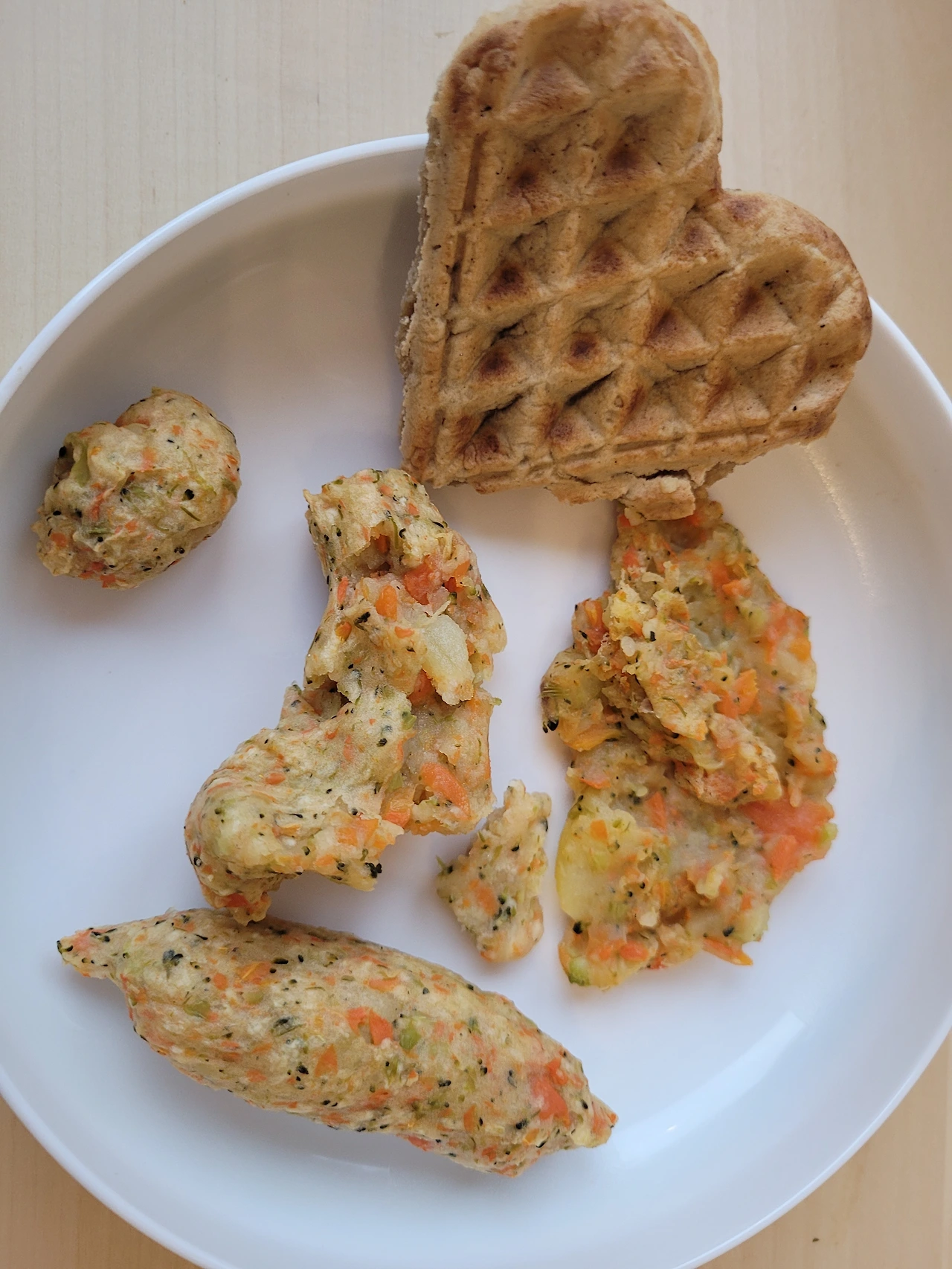 아기 이유식을 한 이틀 너무 안먹어서 남은 죽 때려넣고 와플로 구워서 주고, 스틱 만들어 구워도 주고 별짓을 다해서 먹였다.