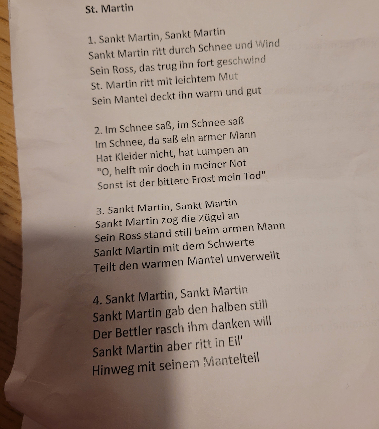 2번째 성 마틴스데이이다 보니 나도 이제 이때 부르는 노래를 어느정도 외웠는데, 이번에 키타에서 아이와 부모 다같이 노래 불러보는 Singkreis가 있어 아이와 앉아 같이 불러보니 좋았다.
