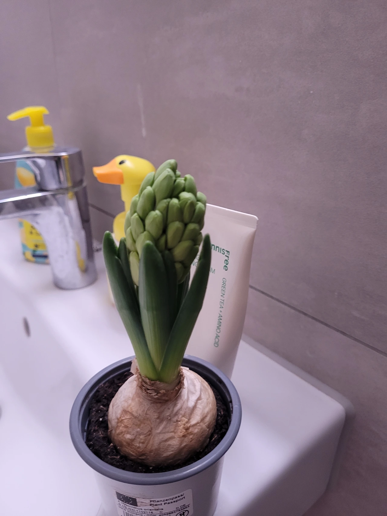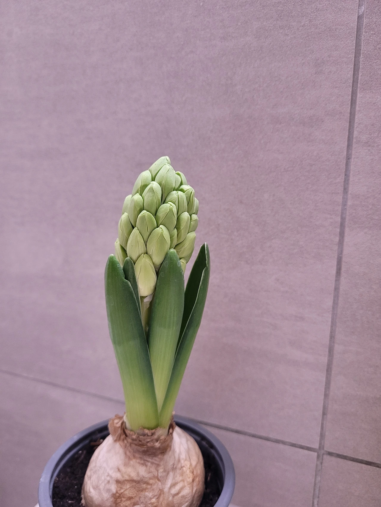 히아신스가 처음으로 봉오리 올리는거 보고 성장속도에 놀라 찍었는데, 이게 만지면 독성이 있다해서 놀라서 발코니에 내놨다.