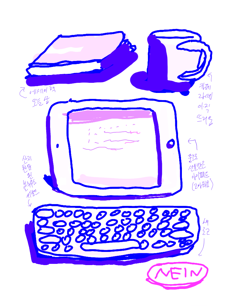 순식간에 반을 다 읽었다. 아참, 슬슬 작업을 시작할 시간이다. 라떼로 목을 축이고 아이패드를 연다. 흰색 블루투스 키보드의 타격감이 경쾌하다. 이상하게 데스크톱으로 쓸 때보다 훨씬 글이 잘 써진다. 하얗고 경쾌한 감성 때문일까, 아니면 그냥 카페에 와서 그런가? 이제는 아이패드가 없으면 못 살 것 같다.
