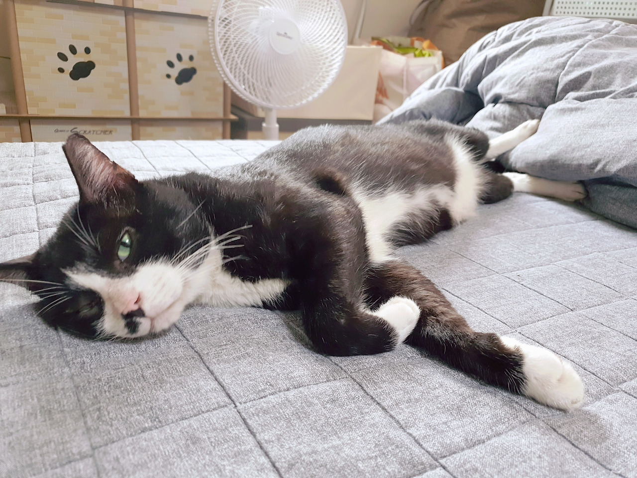 이러다 운동부족이 오지 않을까 걱정되어 전 보호자분께 연락을 드렸다. 그런데 원래 고양이들은 2~3살이 넘어가면 장난감에 흥미를 잘 느끼지 않는 경우가 많다고 한다. 잘 먹고 잘 마시고 잘 싸고 별다른 문제가 없다면 큰 문제는 없다고. 다행이다. 너 그냥 누워있는 걸 좋아하는 거였구나. 게으르다고 하려다가 주인님께 무례한 것 같아 말았다.
