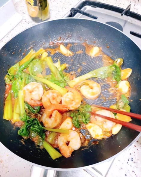 새우는 매콤 새큼하니 탱글탱글하고 청경채는 아삭아삭 달달하다. 달콤한 듯했다가도 끝 맛에 얼얼한 매운맛이 확 올라온다. 이 정도면 성공이다. 제대로 매우면서도 피쉬 소스 덕인지 묘한 감칠맛이 있다. 맛있다! 유튜브를 보며 순식간에 해치워버렸다. 씁. 좀 더 많이 만들걸. 생각보다 너무 맛있게 먹었다.