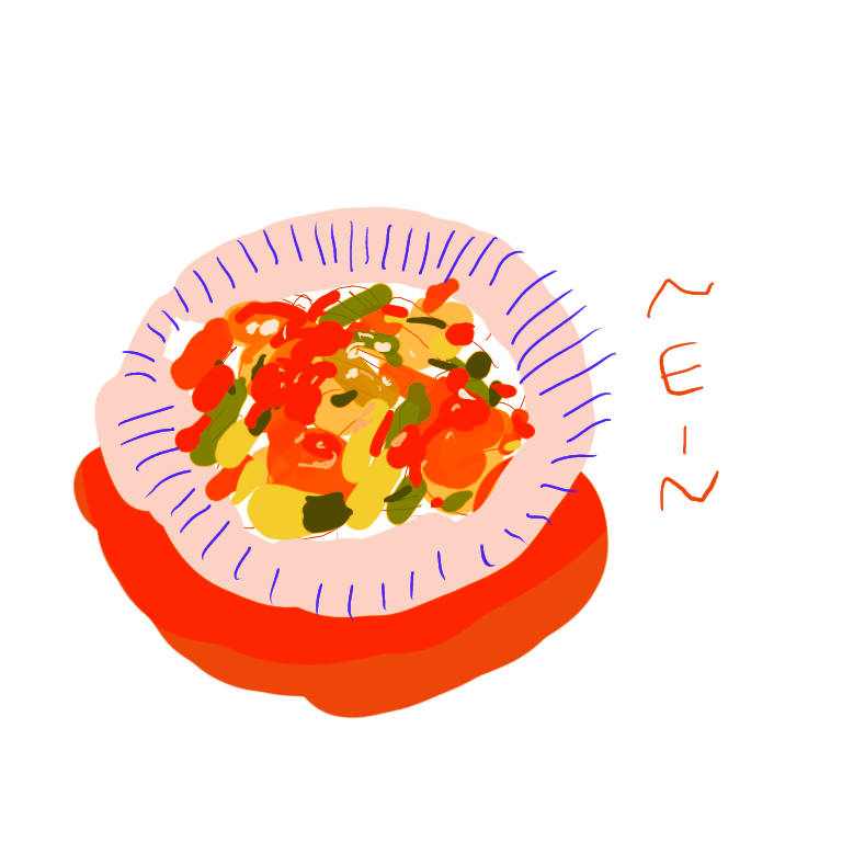 집 밖에 나가지 못해 답답하고, 날씨도 꿀꿀해서 가슴 답답한 요즘이다. 이럴 땐 입안이 다 헐도록 매운 게 땡기곤 한다. 요리를 하고 보니 밤 11시 반. 매큼 달달 즉석요리 덕에 맛있는 밤을 보냈다. 이래저래 갑갑하고 입맛이 없다면 입맛 확 도는 매운 요리를 먹어보면 어떨까. 매큼한 감칠맛이 허한 가슴을 달래주기를. 마무리로 새콤매콤한 드로잉을 얹는다. 마무리까지 완벽한 야식의 완성이다.