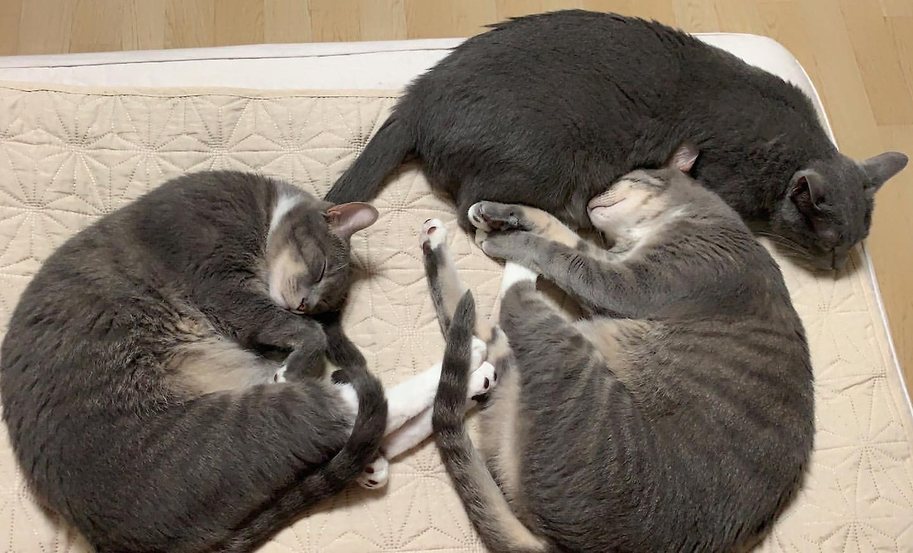 “고양이 부작용이 있더라고요. 처음에는 달라붙어서 자는 애들(고양이들)때문에 불편하고 어색했거든요. 깊이 못 자기도 하고요. 근데 어쩌다 본가에 가거나 친구네 집에 가서 잘 때는 편하게 누워도 신기하게 잠이 안 오는 거예요. 고양이들이 없는 곳에서 자려니까 잠이 잘 안 오더라고요.”
