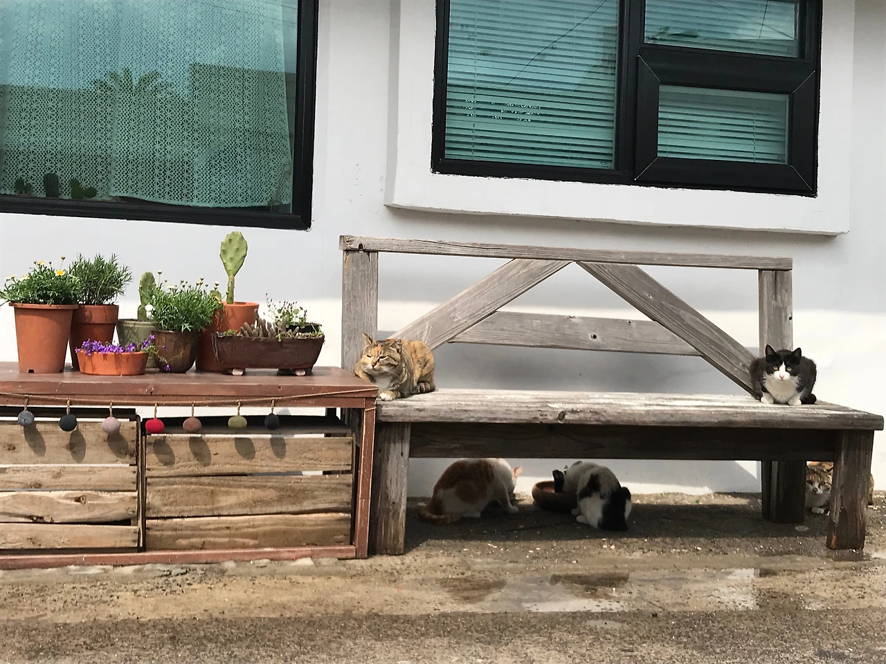 내가 갔을 때도 이 길고양이들은 서로를 본채 만 채 하면서 지내고 있는 것처럼 보였다.