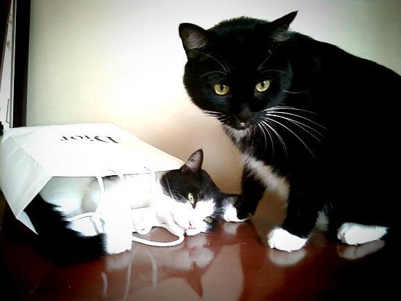 마침내 우리가 차에 타려는 순간, 아주머니가 새끼 고양이 두 마리를 상자에 넣고는 그의 품에 안기다시피 건넸다.