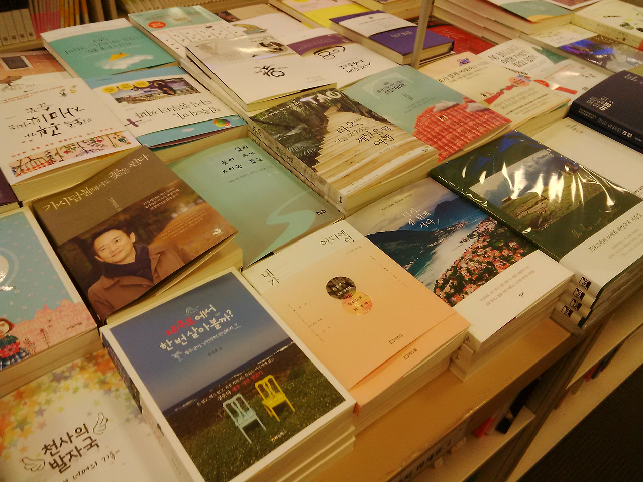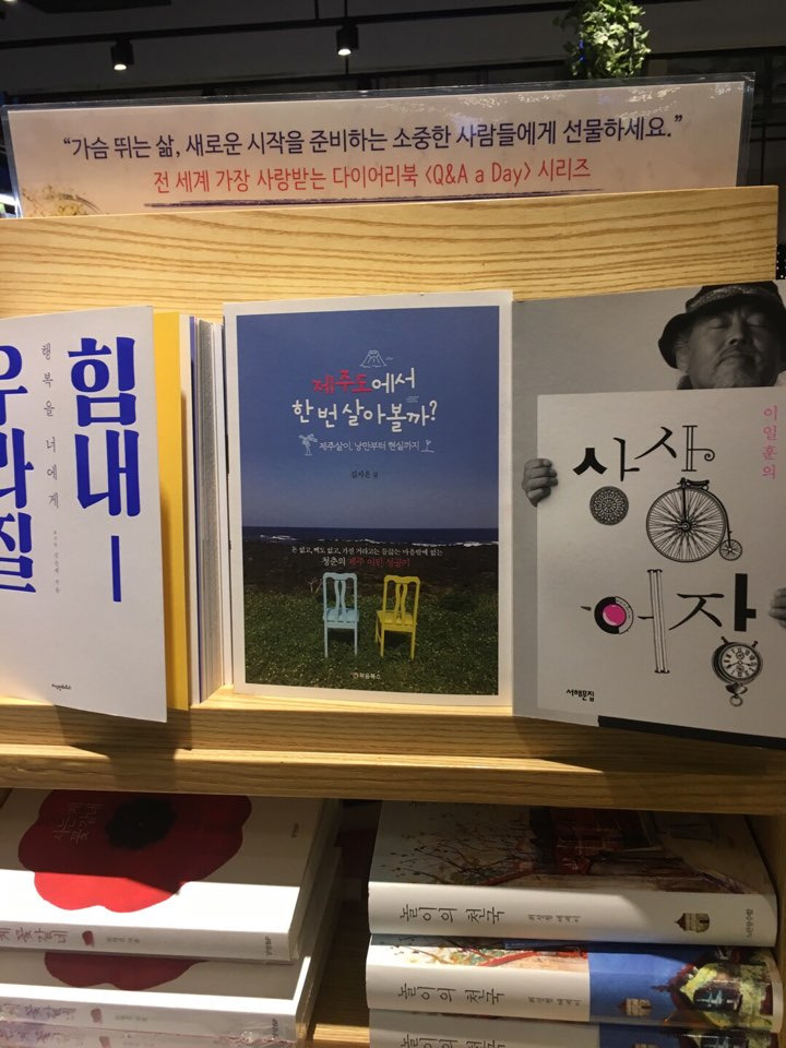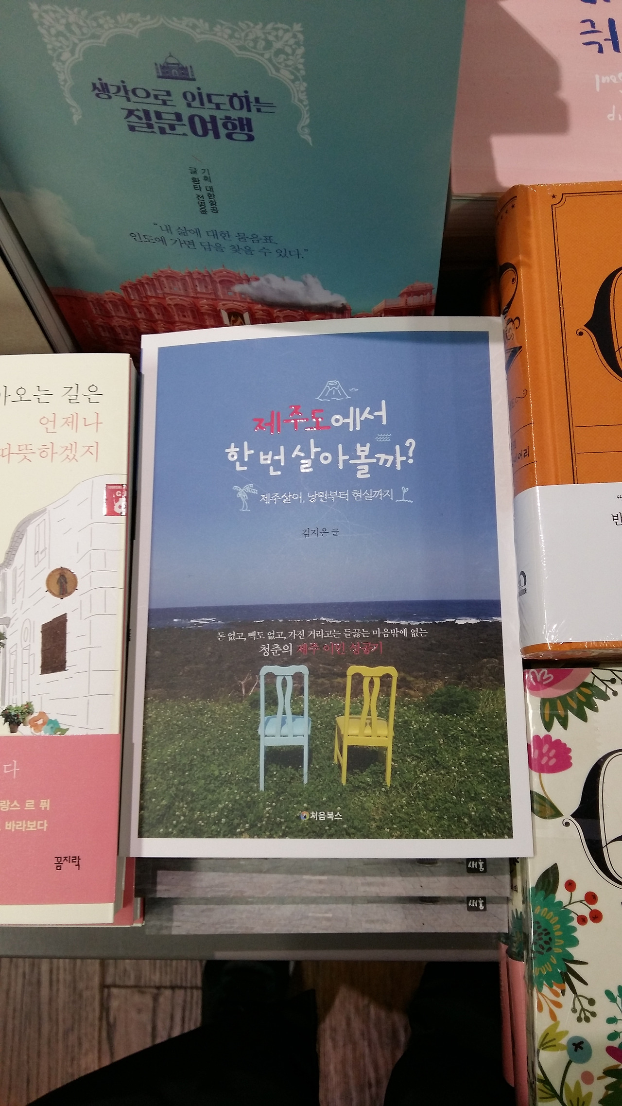 제주도에 대형서점이 없어서 못 가보는 게 아쉽다고 했더니 주변에서 찍어 보내준 대형서점 진열대의 모습이에요. 전국의 대형서점과 인터넷서점에서 모두 구매하실 수 있어요. ^-^