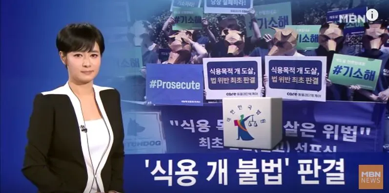 얼마 전 인천지법에서는 식용 목적으로 개를 도살하는 것이 불법이라는 판결을 내렸다. 이 같은 판결은 현행 동물보호법 제8조 제1항 제4호에 명시된 '정당한 사유 없이 죽이는 행위'를 적용한 것이다. 왜 소나 돼지 등 다른 가축과 달리 개만 차별대우하느냐고 되묻는 사람도 있을 것이다. 이는 개고기 자체가 현행법상 '식품'이 아니기 때문이다. 무슨 말인가 하면, 개가 축산법에는 포함되지만 축산물 위생관리법에는 포함되지 않는 동물이기 때문이다. 따라서 식용을 목적으로 개를 도살하는 것은 원칙적으로 불법이며, 현재 유통되고 있는 개고기는 모두 허가받지 않은 작업장에서 불법으로 도축된 것들이다.