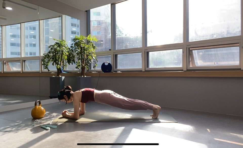 기초 체력을 향상하기 위해선 매일매일 쌓이는 꾸준함이 제일 중요하기 때문에 '매일' 할 수 있도록 3분이라는 시간을 잡았고 그 3분 안에서 30초씩 변형된 플랭크를 진행했다. 변형된 자세에서 오는 자극점들을 오롯이 느끼기 위해 애썼고 무엇보다 바른 플랭크 자세에서 코어 외에 더 큰 자극이나 통증이 오지 않도록 최대한 복부에 집중했다.