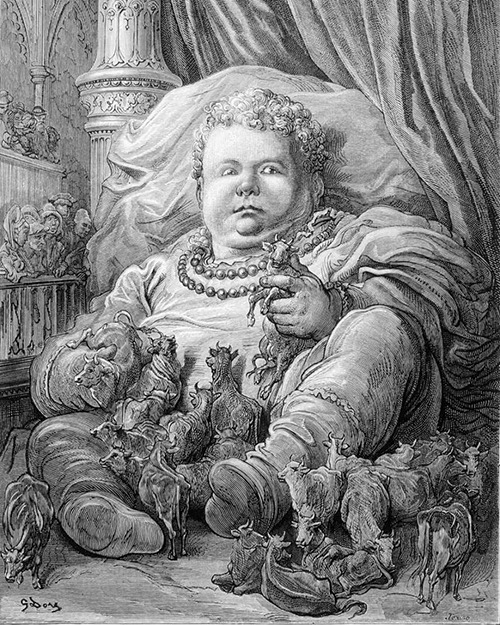 원래 작자미상의 조악한 대중소설이던 <가르강튀아>는 식탐 많고 지저분한 거인의 이야기라고 한다. 이 캐릭터에서 영감 받은 라블레는 아들 팡타그뤼엘의 이야기를 시작으로 연작을 발표했다.