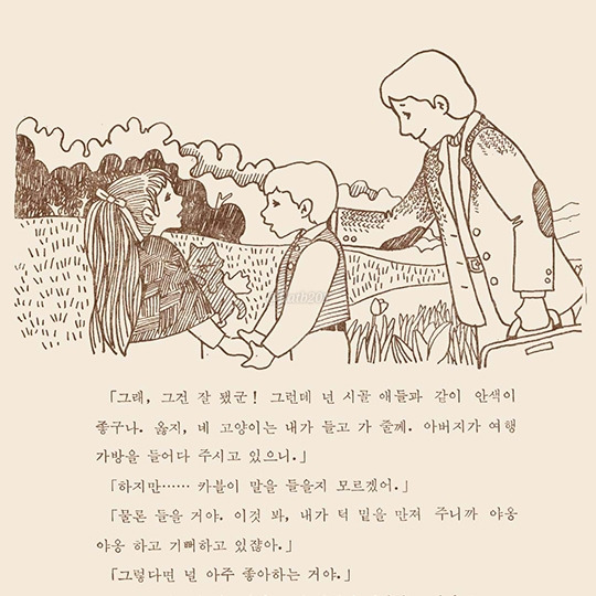 우연히 얻은 미니어처 오토바이를 타고 신나게 활주 하는 생쥐의 모험담 <빨간 오토바이의 랄프 The Mouse and The Motorcycle, 1965>, 행복을 찾는 떠돌이 개 제이슨의 모험담 <주인 없는 개 Jason Nobody's Dog, 1970>, 어느 날 거인이 된 소년 <거인 앨릭스의 모험 The Giant Alexander, 1964>이 특히 기억에 남는다. 그러나 이 전집에서 가장 좋아한 작품은 아무래도 <여보셔요, 니콜라! Allo! Allo! Nicolas!, 1971>이다. 현란한 모험은 없지만 그 자리에는 친숙하게 자라나는 일상의 순간들이 녹아 있다.