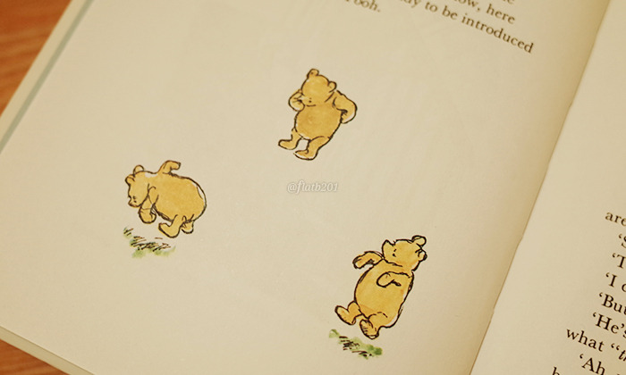 밀른은 아들이 그의 인형들을 의인화시킨 짧은 이야기에 동참하곤 했다. 이것을 발전시킨 것이 <Winnie the Pooh>이다. 디즈니 프랜차이즈로 인해 곰돌이 푸는 유명세만큼 친숙한 아동 캐릭터지만 애초 밀른의 구상은 어른들을 위한 동화 쪽에 가까웠다. 작가이자 시인이었던 밀른은 리듬감을 살린 운문에 많은 신경을 썼다. 당연히 디즈니 애니메이션과 달리 원전은 시적 상상력이 가득한 철학적인 이야기들이다.