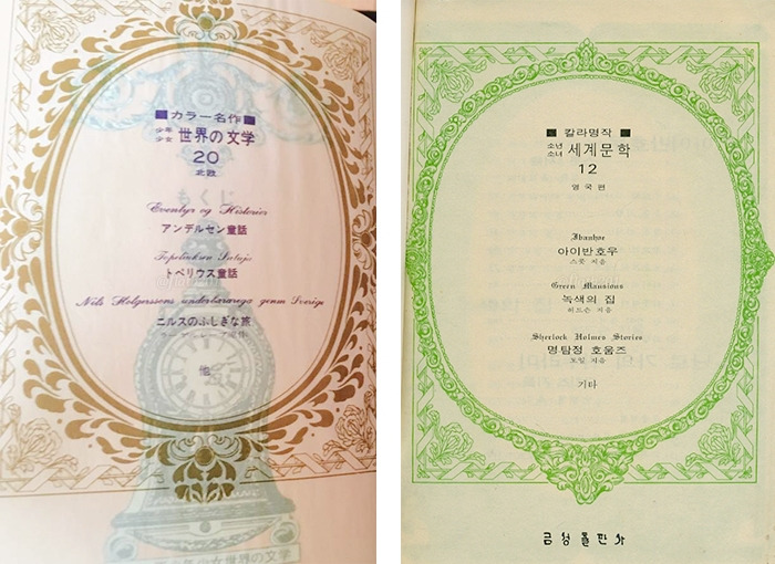 원전의 디자인도 아름답지만 국내 독자들에게 친숙할 금성 전집 북 디자인의 디테일도 무척 아름답고 섬세하다. 안타깝게도 전집의 전반적인 분위기를 관장했을 당시의 북 디자이너들은 이름조차 등재되지 않아 일본의 일러스트레이터보다도 정보를 찾을 수가 없었다.