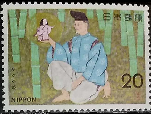 대나무를 팔아 살던 가난한 노부부가 상서롭게 빛나는 대나무순에 감싸진 아기를 발견한다. 대나무에선 황금과 비단이 쏟아졌고 아기는 몇 달 만에 아름다운 소녀로 성장했다. 노부부의 정성 아래 성년이 된 소녀는 가구야 공주 かぐや姫로 불린다. 황금과 비단으로 부자가 된 노부부는 그들이 살던 숲을 떠나 대도시로 이사한다.