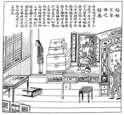 타자가 바라본 근대 중국에 관한 스케치 <점석재화보 點石齋畵報>의 일화를 살펴보면 대학교육까지 받은 신여성이 집안의 압박을 이길 수 없자 결국 구식 남성에게 시집가기로 한다. 혼례일 아침, 예비 신부는 목을 맨 채 발견된다.