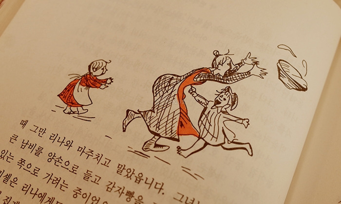 과거의 어떤 한 때를 그리워하는 것은 복기가 기억 속에서만 온전하기 때문이다. 비에른 베리의 일러스트로 더욱 사랑받는 <뢴네베르가의 에밀> 시리즈는 복구된 린드그렌의 유년시절이다. 목가적 정취 아래 근면하고 투박한 농장 식구들과 스웨덴 시골 커뮤니티가 애정 어린 시선으로 그려진다. <떠들썩한 거리의 아이들>, <마디켄> 등의 시리즈처럼 일상의 작은 에피소드들로 진행되지만 지루할 틈이 없는 작품이다.