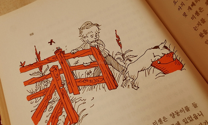 초콜릿색 프레임 안에 명조체 제목이 또렷했던 <범우 사루비아 전집> 수록분으로 읽게 된 <에밀 시리즈>는 지금도 즐겨 읽는다. 주로 청소년 문고로 지칭되던 기존 고전들을 요약 편집한 반양장 문고판 전집이다. 그런데 범우사 수록분 제목은 ‘에밀’이 아닌 <개구장이 미셸>로 표기되어 있다. 이유는 스웨덴 원전이 해외 판본으로 번역되는 과정에서 이름이 교체된 것으로 추측된다. 프랜차이즈 매출이 중요해진 현재는 캐릭터의 고유성을 보전하지만 이전 시기에는 국가별 정서에 맞춰 독자 친밀성을 높이는 전략이 구사되었다. 린드그렌의 다른 작품들-영문판 로타는 ‘폴리 Poly’로, 소년 탐정 칼레는 ‘빌 Bill’로 교체 발행되었다.