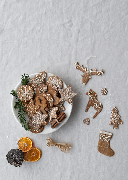 영미권의 전통적인 진저 브레드는 생강향이 밴 쫀득한 당밀 쿠키이다. <메리 포핀스>의 존과 메리가 받은 진저 브레드는 금빛 별이 가득한 넙적하고 두툼한 타입이었지만 대개는 적당히 단단하고 납작한 쿠키이다. 모양내기가 용이해 크리스마스 오너먼트로 애용되어 왔다.