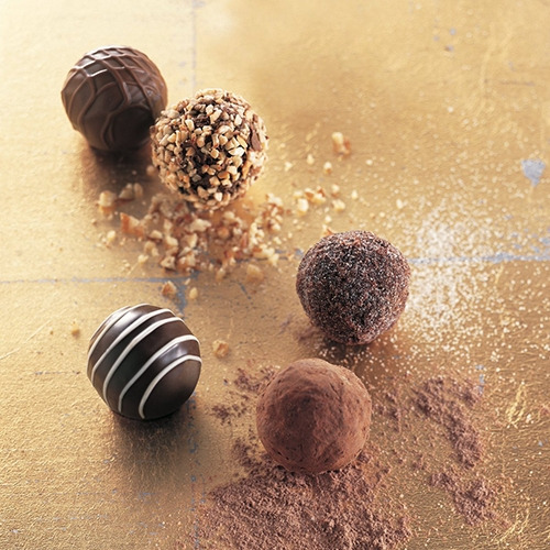 속재료인 가나슈로는 밀도가 다른 초콜릿 크림이 사용된다. 지리적 확장으로 향신료 수급이 원활해지자 비싼 가격에도 바닐라 크림이 인기를 얻었다. 19세기 후반부터는 말린 과일과 견과류, 달콤한 리큐르를 섞는 유행이 고착되었다. 특히 크리스마스 시즌에는 크랜베리와 호두가 여전히 선호된다.