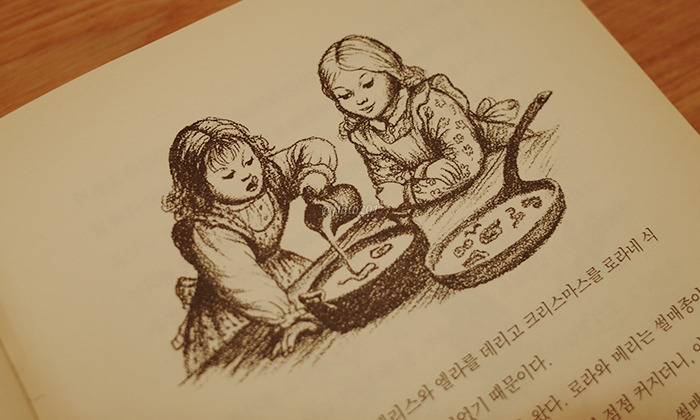 청도교 세계관 속 삶에 관해 쓰고 있지만 <초원의 집>은 계도적이라기보다 서술형 일기에 가깝다. 이 시리즈 인기의 진짜 요인은 의식주에 대한 섬세한 묘사이다. 그중에서도 매일의 먹거리에 대한 묘사는 매번 책을 덮고 간식을 찾게끔 만든다. 히코리 훈제, 돼지꼬리 구이와 오줌보 풍선, 단풍나무 시럽, 크리스마스 포트럭.. 종류도 다양한 식탐 도는 복기는 푸르스트의 마들렌처럼 즉각적으로 각자의 추억을 소환한다.
