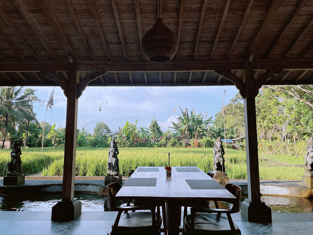 식당으로 내려와 어제 주문한 오믈렛이 나올 동안 논밭을 바라보며 과일과 함께 커피를 마신다. 이 숙소는 전날 주문한 메뉴로 아침을 만들어 준다. 솔직히 음식은 맛이 없어 몇입 먹지 못했다. 어쩌면 요즘 식욕이 없는 나의 문제일지도 모르겠다. 그럼에도 곁들여 나오는 파인애플, 파파야, 수박 그리고 발리니스 커피는 아침을 달콤하게 시작하기에 충분했다. 멍하니 논을 바라보며 불어오는 바람을 느낀다. 지금 시기의 발리는 그늘 아래 있으면 선선하게 바람이 불어온다. 시원한 바람이다. 높은 건물도 없고, 사방이 트여있는 발리 건축 양식의 건물들은 서울에서는 느낄 수 없는 바람을 불어다 준다. 삿구르가 몸을 정화시키는 방법 중에 하나로 인도에 바람이 많이 부는 지방에서는 그저 바람의 자기 몸을 내 맡긴다고 했다. 그 바람에 자신을 정화시킨다고. 이 바람이 나의 부정적인 에너지를 모두 정화해줬으면 좋겠다는 생각도 해본다. 이렇게 천천히 여유롭게 아침을 시작한다.