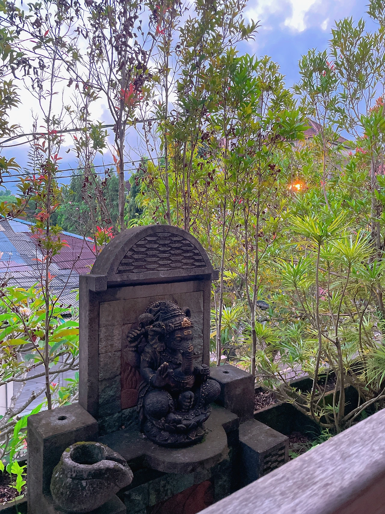 우붓에서의 마지막 날 아침, 새끼 고양이가 가녀린 울음소리를 내며 발코니를 찾아왔다. 고양이가 머리를 숙여 코끼리 신 조각상 아래 고인 빗물이 마신다. 배가 고픈 것 같아 지난밤 남은 나시고랭을 꺼내어 줘 봤지만, 음식에는 흥미가 없는 듯 물만 마시고 돌아갔다. 발코니로 나온 김에 의자를 닦고 명상을 시작한다. 오늘 아침은 이전과 다르게 좀 후덥지근하다. 목 근처로 땀이 맺히는 게 느껴진다. 그래도 명상을 계속하고 상쾌한 기분으로 일어난다.