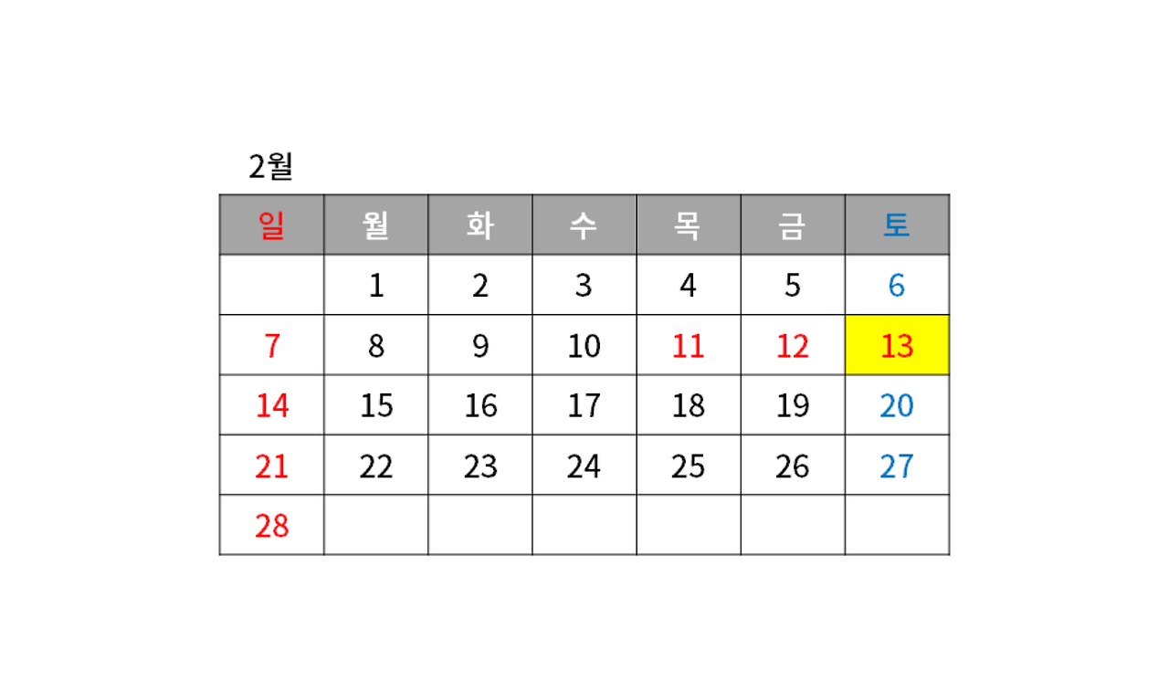 설 연휴의 마지막 날인 13일은 토요일과 겹칩니다. 이 정도는 괜찮으신가요? 이제 시작입니다.