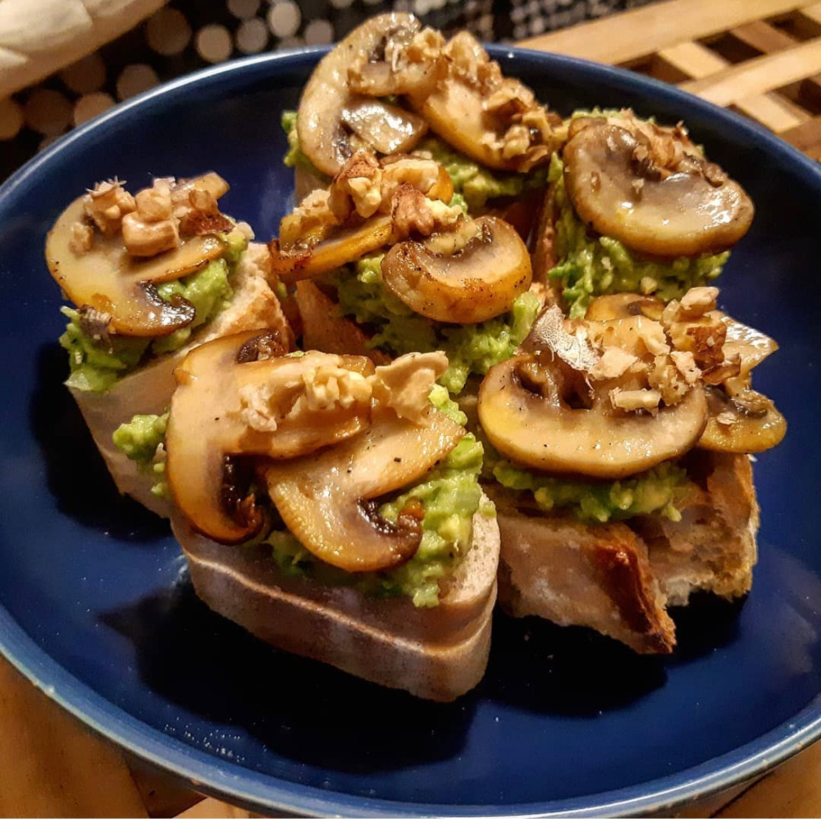 적당히 자른 바게트 위에 으깬 아보카도를 올리고 올리브유로 구운 버섯을 올린다. 그 위에 마무리로 호두를 올려준다. 결과는, 이보다 맛있는 조합을 먹어본 적이 없다. 물론 바게트의 나라이니 바게트 자체만으로도 너무 맛있는데, 나머지 조합들은 정말 환상의 궁합이었다.