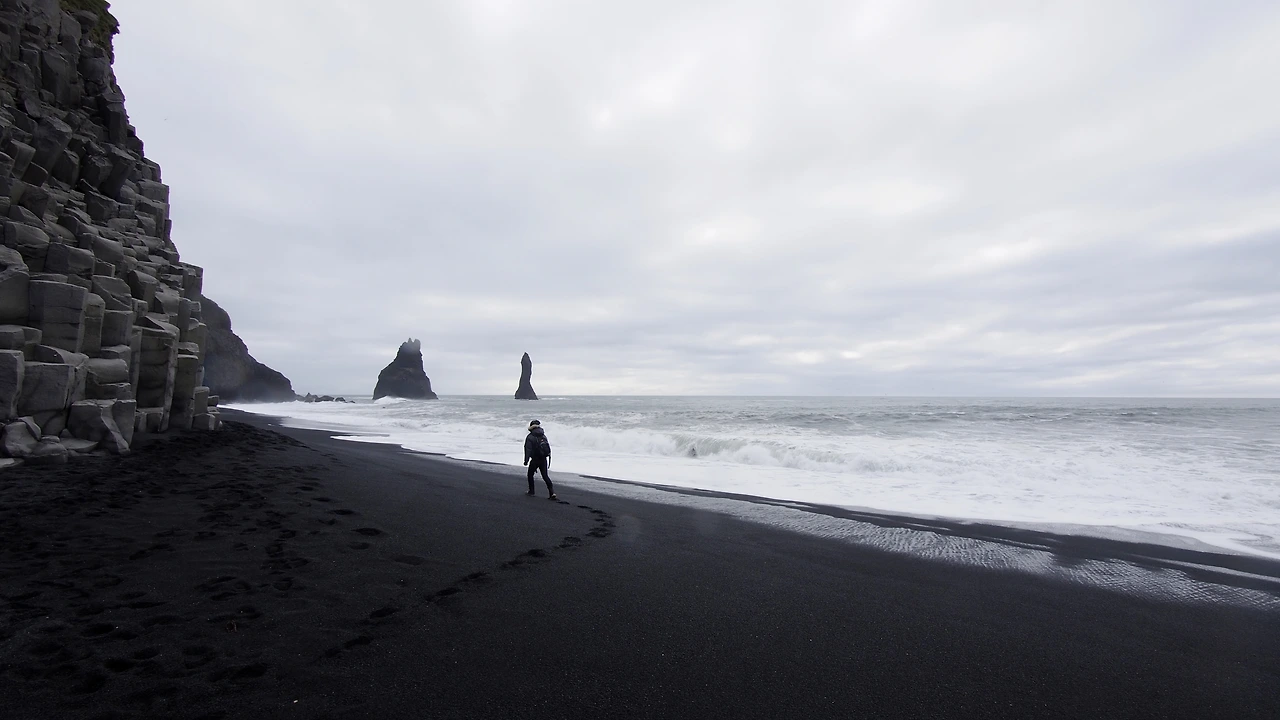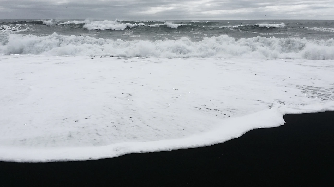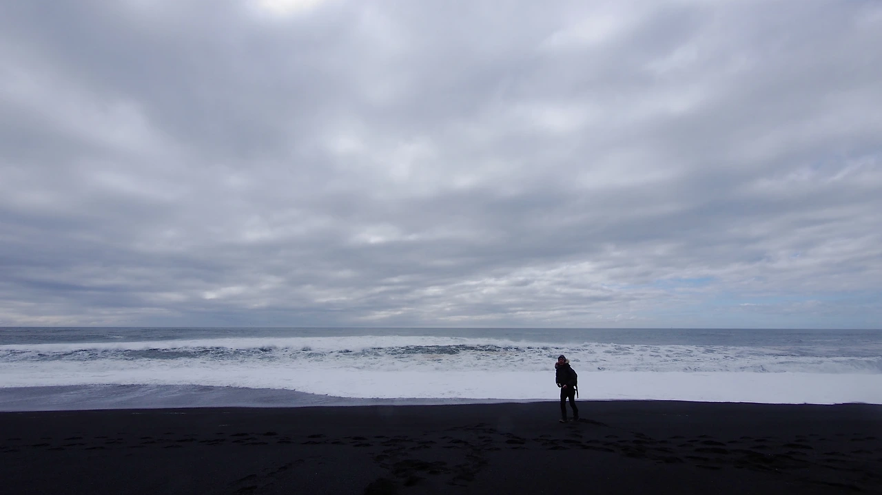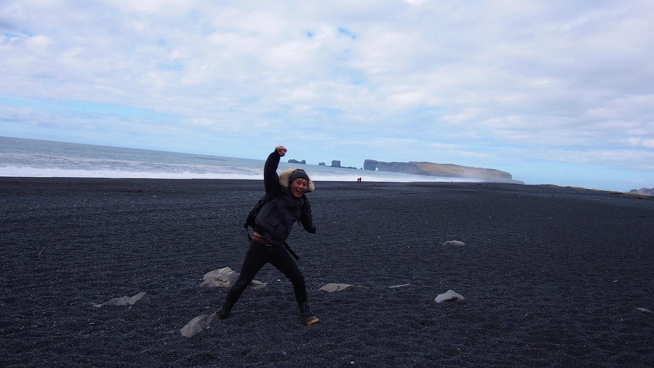 멀리서 봤을 때와는 다른 세상이 펼쳐집니다. Black Sand Beach로 알려진 해변입니다. 말도 안되게 새까만 해변과 진청색의 바다, 하얀색의 포말이 조화를 이루는 공간입니다. 겨울에는 해변에 떠있는 빙하가 또 다른 자연을 선사한다고 합니다.