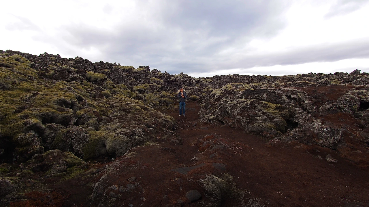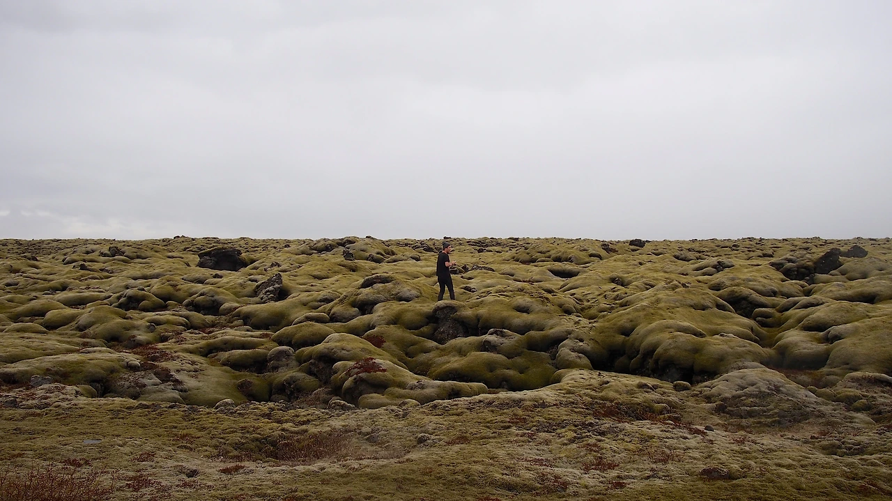 넋을 놓고 달리는 도중 특별히 낯선 공간에 진입합니다. 꿀럼꿀렁한 이끼돌로 도로를 제외한 모든 풍경이 뒤덮인 공간입니다. 오래전 마그마가 온 공간을 덮어 평평하게 만들어 버린 후, 그 위에 아주 오랜 시간 동안 이끼가 자라 만들어진 공간입니다. 이끼는 촉촉하고 푹신푹신해, 한참을 뛰어놀고 또 한참을 이불마냥 누워있기도 합니다. 누군가는 이끼 위에 올라가는 것이 불법이라고 하는데, 해당 법률을 찾지 못하겠더군요. 하지만, 정말 주위에 아무도. 아무도 없기 때문에 찰나의 즐거움을 누려봅니다.
