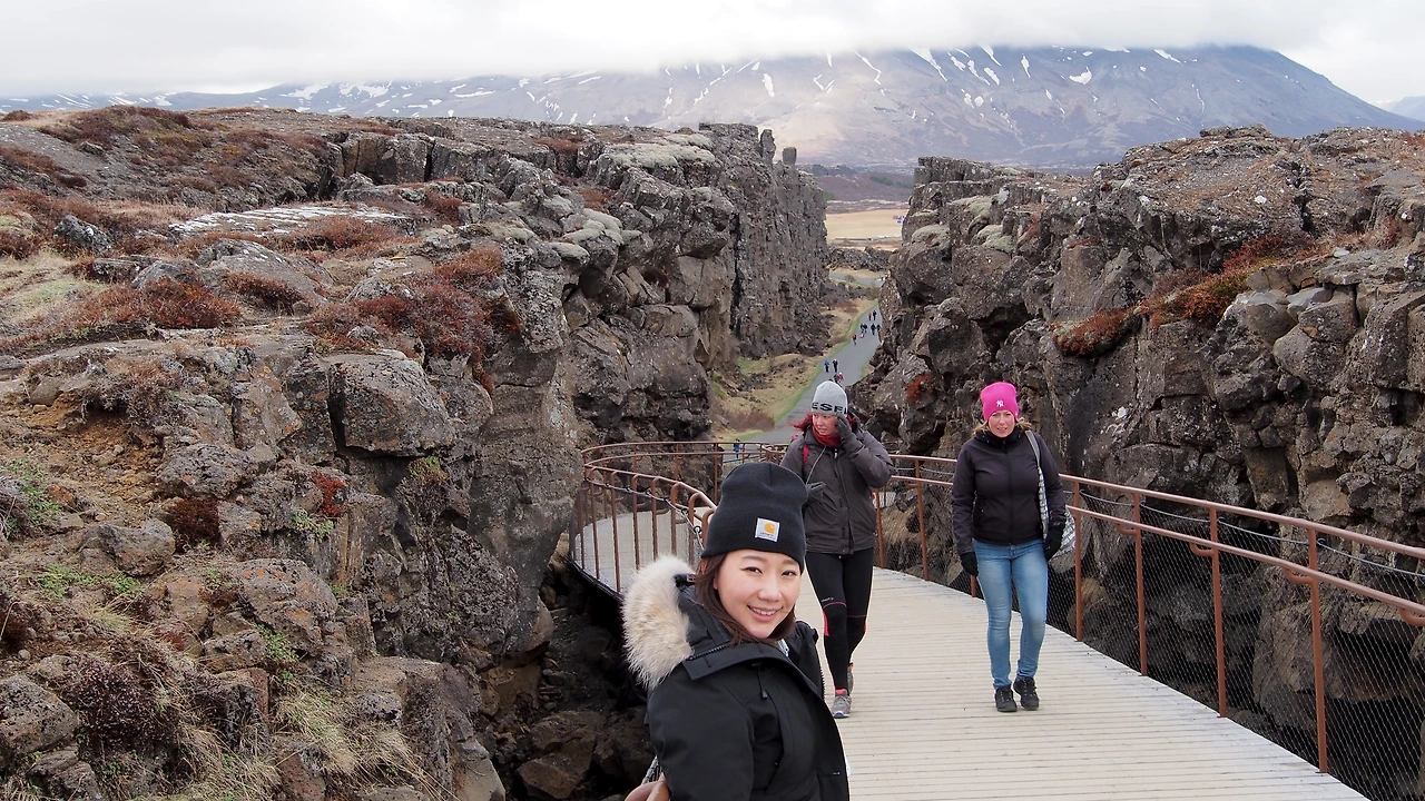 Thingvellir National Park로 이동합니다. 2가지 의미가 있다고 하네요. 세계 최초의 의회가 열린 곳입니다. 1년에 한 번 아이슬란드의 바이킹들이 모두 모여 국정을 논의하고, 법집행을 하며, 운동대회를 열었다고 합니다. '간통한 여자를 익사시켜 처형하는 장소'라는 스팟이 기억에 남습니다. 두 번째로는 유라시이판과 북아메리카 판이 만나는 지점이기도 합니다. 덕분에 두 대륙판이 어긋나 만들어낸 병풍과 같은 기가 막힌 지형을 만날 수 가 있습니다.